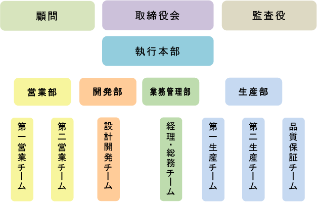 | 取締役会 | 代表取締役 澁谷 忠臣 取締役 永島 智 取締役 澁谷 紘大 監査役 野原 雅彦 |